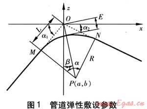 在燃氣管道施工圖設(shè)計中,在平面和立面經(jīng)常采用彈性敷設(shè)的方式。本文僅介紹燃氣管道縱向施工圖設(shè)計中彈性敷設(shè)參數(shù)的計算。