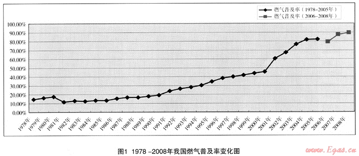 2 1978年以來我國燃氣普及率(%)的變化