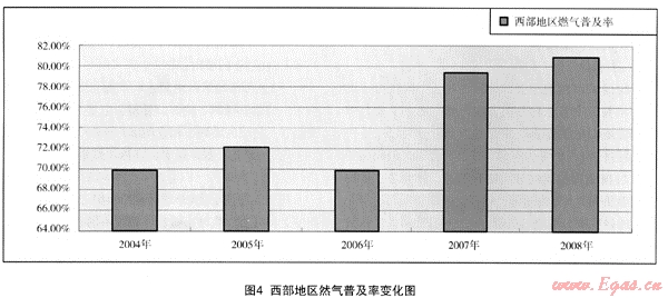 表1 2004年—2008年我國四大區(qū)域的燃氣普及率