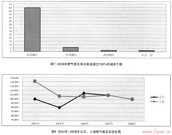 (3) 上述結(jié)論也可從以下將討論的2008年我國燃氣普及率達到或超過l00%的城市狀況得出。