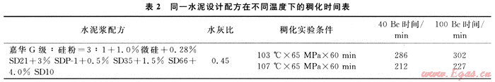 2) 過高估計循環(huán)溫度會致使尾管懸掛器喇叭口水泥石長期無強度。深井Ø177.8mm尾管固井封固段長度可能超過2000m,水泥石上下溫差達(dá)到50℃左右,這些都與循環(huán)溫度密切相關(guān)。