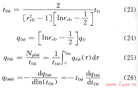 在繪制典型曲線前,對(duì)無量綱時(shí)間和無量綱產(chǎn)量進(jìn)行變換,引入如下變量[6]: