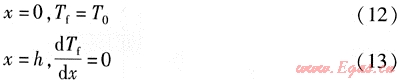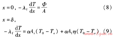 對(duì)于肋端絕熱的邊界條件為:
