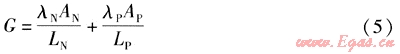 式中LN、LP——N型、P型半導(dǎo)體的長度,m