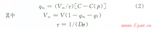 目前主用運(yùn)用蘭格繆爾等溫吸附原理來描述儲(chǔ)層氣體的吸附解吸。實(shí)驗(yàn)和理論研究表明,蘭格繆爾等溫吸附原理適用頁巖氣的吸附解吸特性,即蘭格繆爾單分子層吸附狀態(tài)方程: