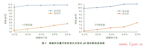 吸收液:水+4%膨潤土,并用無水碳酸鈉與氫氧化鈉調節(jié)吸收液pH值,結果見圖6。
