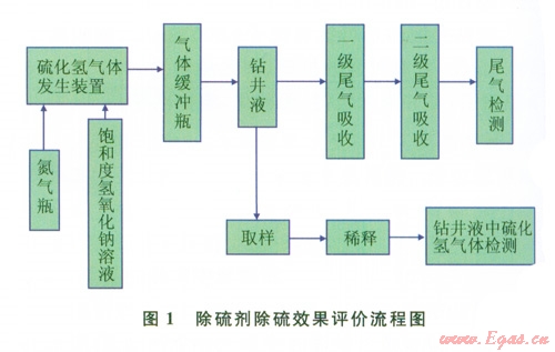 硫化氫屬劇毒氣體,當空氣中濃度超過1 000mg/m3時,可引起急性中毒,造成人員傷亡事故[1-3]。鉆井中,硫化氫氣侵首先會對鉆井液產生嚴重污染,導致鉆井液的流變性能變差,如影響攜帶巖屑、井壁穩(wěn)定、造成起下鉆壓力激動等,增加鉆井成本;其次會對金屬產生氫脆破壞:造成井下管柱的突然斷落、井口裝置失效、地面管匯和儀表的爆裂,引發(fā)井噴失控或著火事故。因此,在鉆井過程中遇到H2S氣侵時,能否及時清除鉆井液中的H2S氣體至關重要。國內外現(xiàn)場鉆井過程中針對硫化氫氣侵采取的主要措施之一就是在鉆井液中加入除硫劑,使硫化氫氣體被氧化或與金屬離子生成沉淀,即將活性硫轉換成非活性硫。而現(xiàn)有室內評價鉆井液硫化氫吸收劑除硫效果與現(xiàn)場使用效果差異較大。因此研究一種更加接近現(xiàn)場使用效果的室內除硫劑除硫效果評價方法具有現(xiàn)實意義。