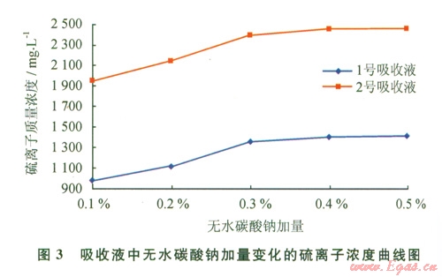 2.9對不同吸收液吸收硫化氫后溶液中硫離子濃度分析