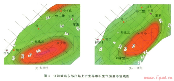3)遼河坳陷東部凸起上古生界泥頁巖累積生氣強度大、生氣能力高、含氣量大,具備頁巖氣資源潛力,是下一步非常規(guī)天然氣開發(fā)的重點層系和地區(qū)。