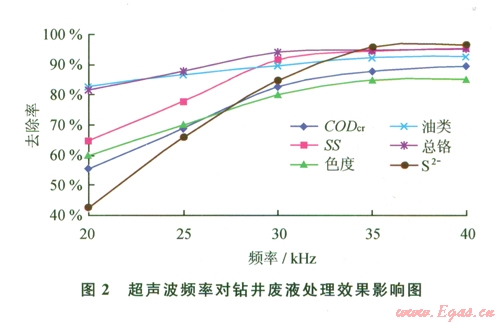 2.3.2超聲波頻率對(duì)鉆井廢液脫穩(wěn)混凝的影響