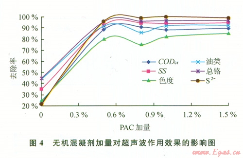 2.3.4 混凝劑PAC加量對(duì)超聲作用效果的影響