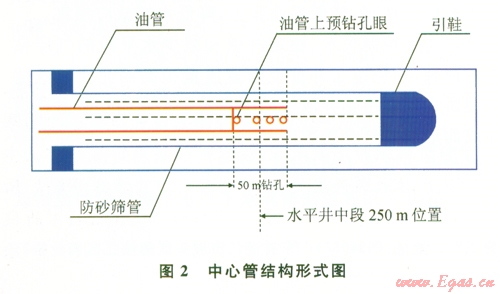 東方l-1氣田在開發(fā)時(shí)采用優(yōu)化篩管、盲管長(zhǎng)度比例以及位置關(guān)系對(duì)水平井各段予以均衡。經(jīng)過研究,東方l-1氣田采用伸進(jìn)篩管中的油管(圖2),尾段