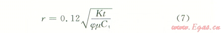 根據(jù)滲流力學(xué)理論,對(duì)于封閉氣藏中定產(chǎn)生產(chǎn)井,當(dāng)處于擬穩(wěn)定流動(dòng)時(shí),在任意一點(diǎn)處有: