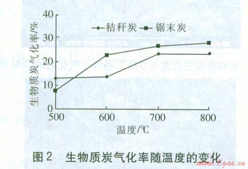 ①溫度對(duì)生物質(zhì)炭氣化率的影響