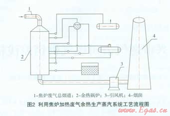 “利用焦爐加熱廢氣余熱生產蒸汽系統(tǒng)”工藝流程見圖2。