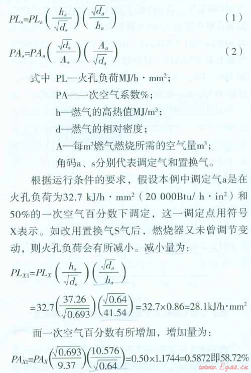 如前所述,本文是介紹美國燃?xì)饣Q性的求解公式,在此,先說明燃?xì)饣Q前后,火孔負(fù)荷和一次空氣系數(shù)發(fā)生變化的計(jì)算公式,以加深對這些公式應(yīng)用的理解。公式導(dǎo)出的過程則隨后有所論證。