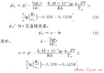 根據(jù)如上關系,可通過繪制氣藏彈性二相法壓力降落曲線并結合氣藏儲層巖石和流體的綜合壓縮系數(shù)、地層壓力、產(chǎn)量等參數(shù),計算彈性二相法儲量。適用條件:壓降和產(chǎn)量相對穩(wěn)定,上下波動不得超過5%。