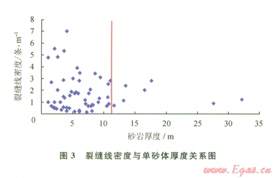 2.1  裂縫密度與砂巖厚度關(guān)系