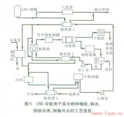針對上述特點,遠(yuǎn)期擬開展LNG衛(wèi)星站冷能用于深冷粉碎橡膠、制冰、中小型低溫冷庫、發(fā)電的研究以及LNG的梯級利用等。