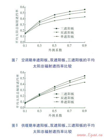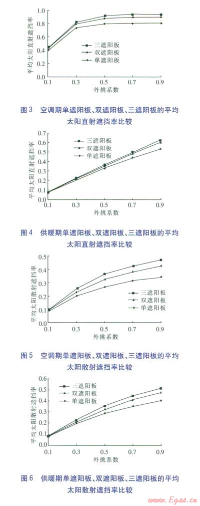研究?jī)?nèi)容包括:?jiǎn)握陉柊暹m宜的外挑系數(shù);多遮陽板(包括雙遮陽板、三遮陽板)與單遮陽板的性能比較;遮陽板對(duì)照明電耗的影響;多遮陽板對(duì)室內(nèi)采光的影響。