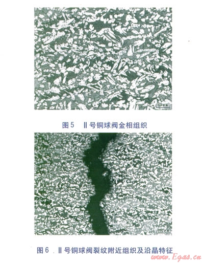 對I號、Ⅱ號銅球閥的金相組織[1]及裂紋進(jìn)行分析,結(jié)果如下: