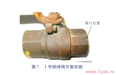 Ⅰ號銅球閥開裂形貌見圖l,閥體沿軸向方向開裂,裂口長度約l