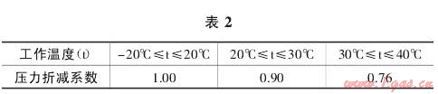 1.2.3 聚乙烯燃氣管道的工作溫度超過20℃時,還需要考慮管道燃氣升高對于其自身承受能力的影響,也就是說,溫度的勝過對造成其允許的最大工作壓力值受到影響而降低,具體的降低系數(shù)如表2。