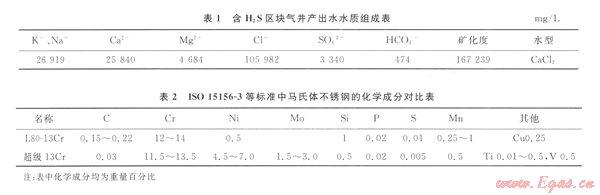 1 某含H2S區(qū)塊的氣井腐蝕環(huán)境
