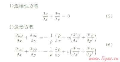 式中u、v分別是速度在x、y方向的分量;p為流體單元體上的壓力;ρ為流體密度,對(duì)于不可壓縮流體,可視為常數(shù)。