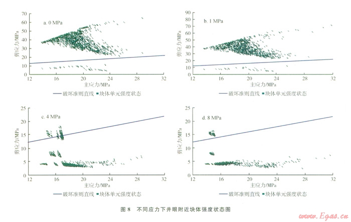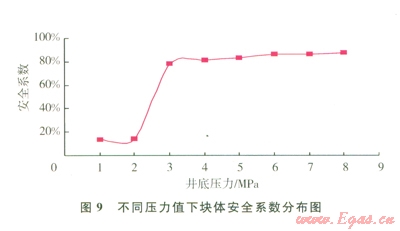 2)通過(guò)定量分析各種狀態(tài)井眼附近塊體失效情況,從安全系數(shù)上看,塊體在2~8 MPa幾種狀態(tài)下都超過(guò)78%。