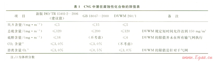 1)所謂“潛在的”含義是“在沒有液相水存在的條件下,這些化合物均無腐蝕性”。因而新版ISO/TR 15403-2-2006制訂CNV質(zhì)量控制指標(biāo)的基本前提是:必須深度脫水以防止CNG在加氣過程及使用過程中形成液相水。