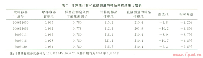 4)采用流量計直接計量樣品體積比采用壓縮因子計算樣品體積低2.2%~/4.8%,因此樣品體積不應采用流量計直接計量,而應采用計算法。