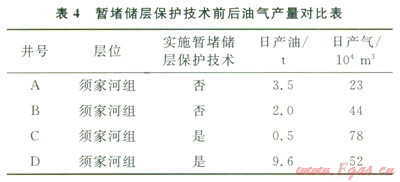 針對研究的四川油氣田某區(qū)塊須家河組儲層,須家河組儲層段中的2口開發(fā)井實施多級架橋暫堵儲層保護(hù)技術(shù)前后的油氣產(chǎn)量對比(表4)。實施多級架橋暫堵儲層技術(shù)的2口開發(fā)井,其油氣產(chǎn)量得到明顯提高,充分說明多級架橋暫堵技術(shù)對值層具有良好的保護(hù)作用。