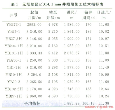 截至2013年4月,除YB27-2井外,中國石化西南油氣分公司在元壩地區(qū)部署的產(chǎn)能建設(shè)井均完成第三次開鉆。從表1中可以看出,采用推薦的技術(shù)集成應(yīng)用后,無論是鉆井周期還是日進(jìn)尺均優(yōu)于前期施工井。ll口井第三次開鉆平均鉆井時間166.18d,較前期平均值縮短34d。