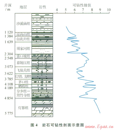 四川盆地深井—超深井鉆井提速一直是制約天然氣勘探開發(fā)的難題,氣體欠平衡鉆井、PDC鉆頭的應(yīng)用一定程度提高了深井鉆井速度,但還不能滿足國家經(jīng)濟(jì)發(fā)展對天然氣勘探開發(fā)的形勢和要求。而四川中部地區(qū)的樂山 龍女寺古隆起儲層埋藏深,垂直井深超過5000m,鉆遇地層類型多,巖性復(fù)雜,提高鉆井速度遇到以下4個方面的工程地質(zhì)難點。
