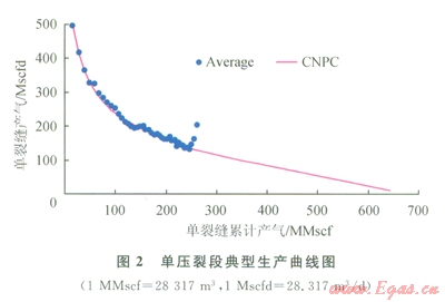 對(duì)于天然裂縫不發(fā)育的低滲、致密砂巖氣藏的氣井,在儲(chǔ)層條件不變的情況下,有效壓裂段數(shù)不同,其產(chǎn)量也不同。在合理的壓裂間距下,氣層長度越長,氣井的有效壓裂段數(shù)越多,氣井的產(chǎn)量也越高。因此,國際上多采用單壓裂段產(chǎn)能疊加法進(jìn)行水平井產(chǎn)能評(píng)價(jià),西加盈地的Montney組致密氣藏也采用該分析方法來評(píng)價(jià)氣井產(chǎn)能和預(yù)測氣藏儲(chǔ)量(圖2)。