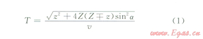圖2顯示了傾斜地層與直井相交情況下的測井。由傾斜地層產(chǎn)生的反射波按照傳播方向可分為上行反射波和下行反射波。設(shè)地層與井的夾角是a,反射波旅行時表達(dá)式為: