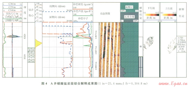 碳酸鹽巖儲集層非均質(zhì)性強(qiáng)、各向異性大,儲集層以基質(zhì)孔隙、溶蝕孔洞、裂縫為主,結(jié)構(gòu)復(fù)雜。測井解釋難度大,而目前現(xiàn)有的裂縫識別測井方法探測深度太淺,一般在3m以內(nèi),這只能定性給出井壁附近地層裂縫發(fā)育情況,難以了解儲層橫向變化或井壁裂縫向外延伸發(fā)育情況,在裂縫性儲集層中測井評價成果常與試油結(jié)果發(fā)生矛盾。針對這些問題,中同石油渤海鉆探工程公司測井公司白2001年開始研究遠(yuǎn)探測聲波反射波成像測井技術(shù),利用聲波反射波信息來識別井旁3~10m范圍內(nèi)的儲層信息,彌補(bǔ)了現(xiàn)有測井方法探測深度不足的缺陷。