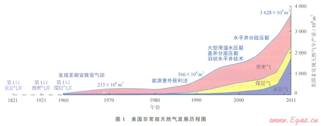 非常規(guī)油氣已成為國(guó)內(nèi)外油氣行業(yè)研究和關(guān)注的熱點(diǎn),中國(guó)石油評(píng)選的“2011年國(guó)際石油十大科技進(jìn)展”中,其中有4項(xiàng)內(nèi)容與非常規(guī)油氣勘探開(kāi)發(fā)直接相關(guān):①儲(chǔ)層物性納米級(jí)實(shí)驗(yàn)分析技術(shù)投入應(yīng)用,改變了傳統(tǒng)的儲(chǔ)層孑L喉結(jié)構(gòu)表征方法,建立了非常規(guī)儲(chǔ)層性質(zhì)有效評(píng)價(jià)體系,大大拓展了全球油氣勘探領(lǐng)域;②致密油開(kāi)發(fā)關(guān)鍵技術(shù)突破實(shí)現(xiàn)工業(yè)化生產(chǎn)應(yīng)用,使美國(guó)致密油開(kāi)發(fā)取得突破,將引領(lǐng)和帶動(dòng)全球致密油勘探開(kāi)發(fā)進(jìn)程;③綜合地球物理方案提高非常規(guī)油氣勘探開(kāi)發(fā)效益;④水平井鉆井技術(shù)創(chuàng)新推動(dòng)頁(yè)巖氣大規(guī)模開(kāi)發(fā)[2]。