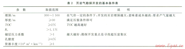 具有勘探開(kāi)發(fā)價(jià)值的頁(yè)巖儲(chǔ)層須滿足表2所示的基本條件。