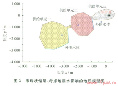 根據(jù)產(chǎn)量不穩(wěn)定分析方法的原理,采用Topaze生產(chǎn)分析軟件,開展了以精細刻畫地質(zhì)模型、數(shù)值求解等方面的研究,建立考慮地層水侵影響的串珠狀儲層模型,表征復雜儲集體、地層水侵影響等;并進行了理論模擬分析,檢驗該方法識別多儲集體、地層水侵等方面的特征。