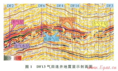 鶯歌海盆地位于南海北部大陸架西北區(qū),該盆地是一個(gè)年輕、快速沉降、以海相沉積為主的盆地,異常高溫超壓是其重要特征之一。新近紀(jì)中中新世梅山組一晚中新世黃流組儲(chǔ)蓋組合稱為中深層,該層段埋藏較深,地溫梯度為4.56℃/l00m,壓力高(地層壓力系數(shù)大于l.8),屬高溫超壓區(qū)[8-9],給鉆井工程帶來極大風(fēng)險(xiǎn),使得該領(lǐng)域勘探技術(shù)難度大、資金投入高,勘探風(fēng)險(xiǎn)大。由于鶯歌海盆地中深層的異常溫壓、泥底辟[10]、立體成藏[11]等因素的綜合影響,使得中深層的地震響應(yīng)錯(cuò)綜復(fù)雜?,F(xiàn)有鉆探資料顯示,DFl3氣田相同的地震反射特征可能對(duì)應(yīng)氣層、水層、含氣水層、氣水同層、干層等不同的地質(zhì)情況(圖1),相同物性與厚度的砂體也可能對(duì)應(yīng)不同強(qiáng)度的地震反射。分析中深層地震反射錯(cuò)綜復(fù)雜的其原因包括受淺層氣吸收衰減、泥底辟、蓋層差異、砂體耦合、儲(chǔ)層物性、儲(chǔ)層厚度、流體等因素的影響。因此,需要研究一種方法對(duì)著此影響因素逐一分析、消除或剝離,以達(dá)到本區(qū)高溫高壓儲(chǔ)層預(yù)測(cè)和含氣性檢測(cè)的目的。