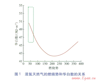 目前各國一般規(guī)定兩種燃?xì)饣Q時華白數(shù)形的變化范圍為-10%~l0%[3]。因此,對于l2T天然氣,華白數(shù)允許變化范圍是45.71~55.87MJ/m3。