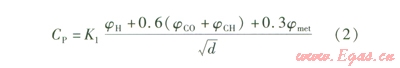 燃燒勢Cp,是反映燃?xì)馊紵齼?nèi)焰高度的指標(biāo),計算公式為: