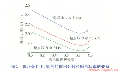 由圖4、5可知,增大管道的壓力降后,無論中壓還是低壓條件,管道的輸氣功率均有顯著提升。在中壓條件下,混合氣體中氫氣的體積分?jǐn)?shù)為0.23時,為保證輸氣功率不變,則起點壓力需從0.38MPa增大到0.384MPa。在低壓條件下,混合氣體中氫氣的體積分?jǐn)?shù)為0.23時,為保證輸氣功率不變,則起點壓力需從7kPa增大到7.3kPa。這說明微小提升壓力降,就能保證管道的輸氣能力不變。