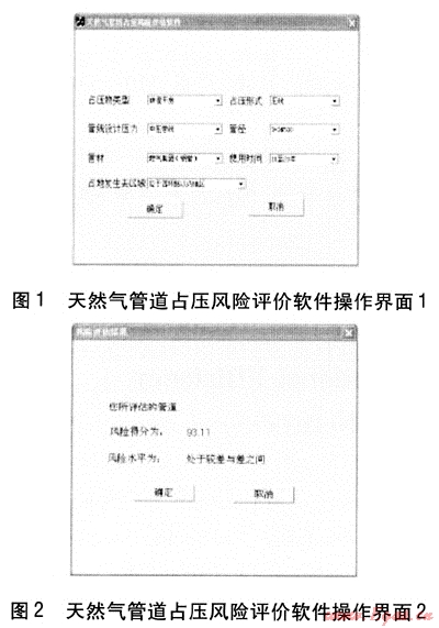 以天然氣管道占壓隱患模糊綜合評價(jià)方法為基礎(chǔ),根據(jù)占壓隱患影響因素權(quán)重及各因素水平的評分結(jié)果,編制占壓隱患風(fēng)險(xiǎn)評估軟件。圖1、2為天然氣管道占壓風(fēng)險(xiǎn)評價(jià)軟件操作界面。