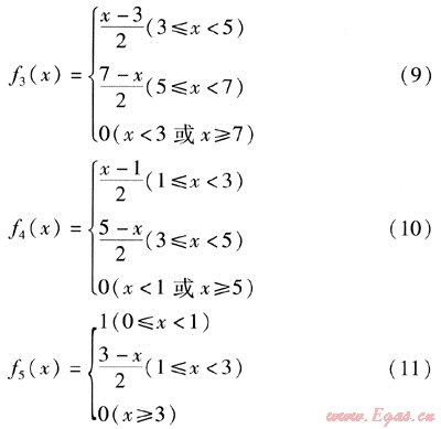 f1(x)、f2(x)、f3(x)、f4(x)、f5(x)——隸屬度函數(shù),依次為被評價(jià)因素對評價(jià)集V的5個(gè)評價(jià)指標(biāo)的隸屬度