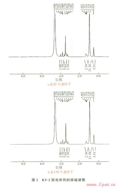 核磁共振和紅外光譜能很好地反映出泡排劑的分子結(jié)構(gòu),同時(shí)還可以由核磁譜圖和紅外譜圖分析出泡排劑所含的基本官能團(tuán),通過(guò)這些基本官能團(tuán)推測(cè)泡排劑在