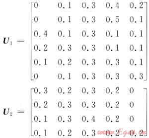 通過調(diào)查海外油氣項(xiàng)目領(lǐng)域的財(cái)務(wù)專家,外部財(cái)務(wù)風(fēng)險(xiǎn)評價(jià)隸屬矩陣U1、內(nèi)部財(cái)務(wù)風(fēng)險(xiǎn)評價(jià)隸屬矩陣U2如下: