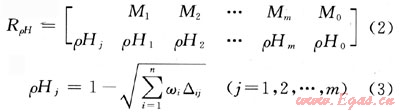 式中RρH為ρ個事物的H個模糊特征的復(fù)合物元;Mi為第i個事物(i=1,2,…,m);wi為第i個事物評價指標的熵權(quán);△ij(i=1,2,…,n;j=1,2,…,m)為標準模糊物元R0n與復(fù)合從優(yōu)隸屬度模糊物元